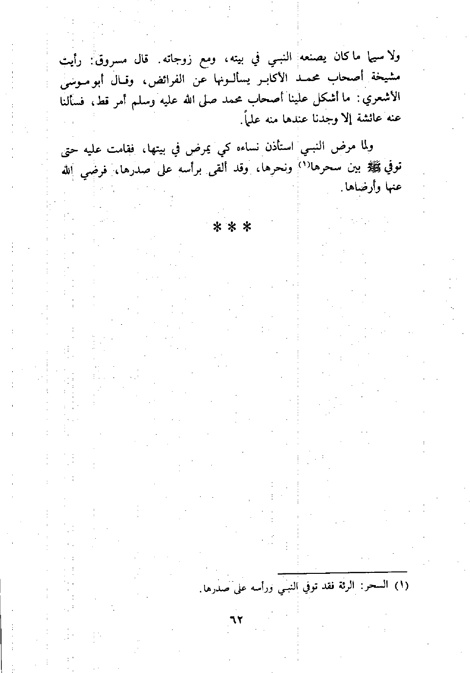 (1) السحر: الرئة فقد توفي النبي ورأسه على صدرها.