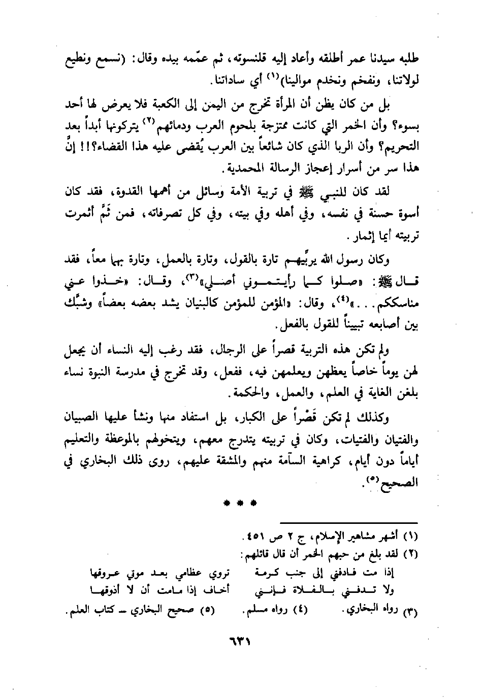 وكذلك لم تكن قصرا على الكبار، بل استفاد منها ونشأ عليها الصبيان والفتيان والفتيات، وكان في تربيته يتدرج معهم، ويتخولهم بالموعظة والتعليم أياما دون أيام، كراهية السامة منهم والمشقة عليهم، روى ذلك البخاري في الصحيح «5» .