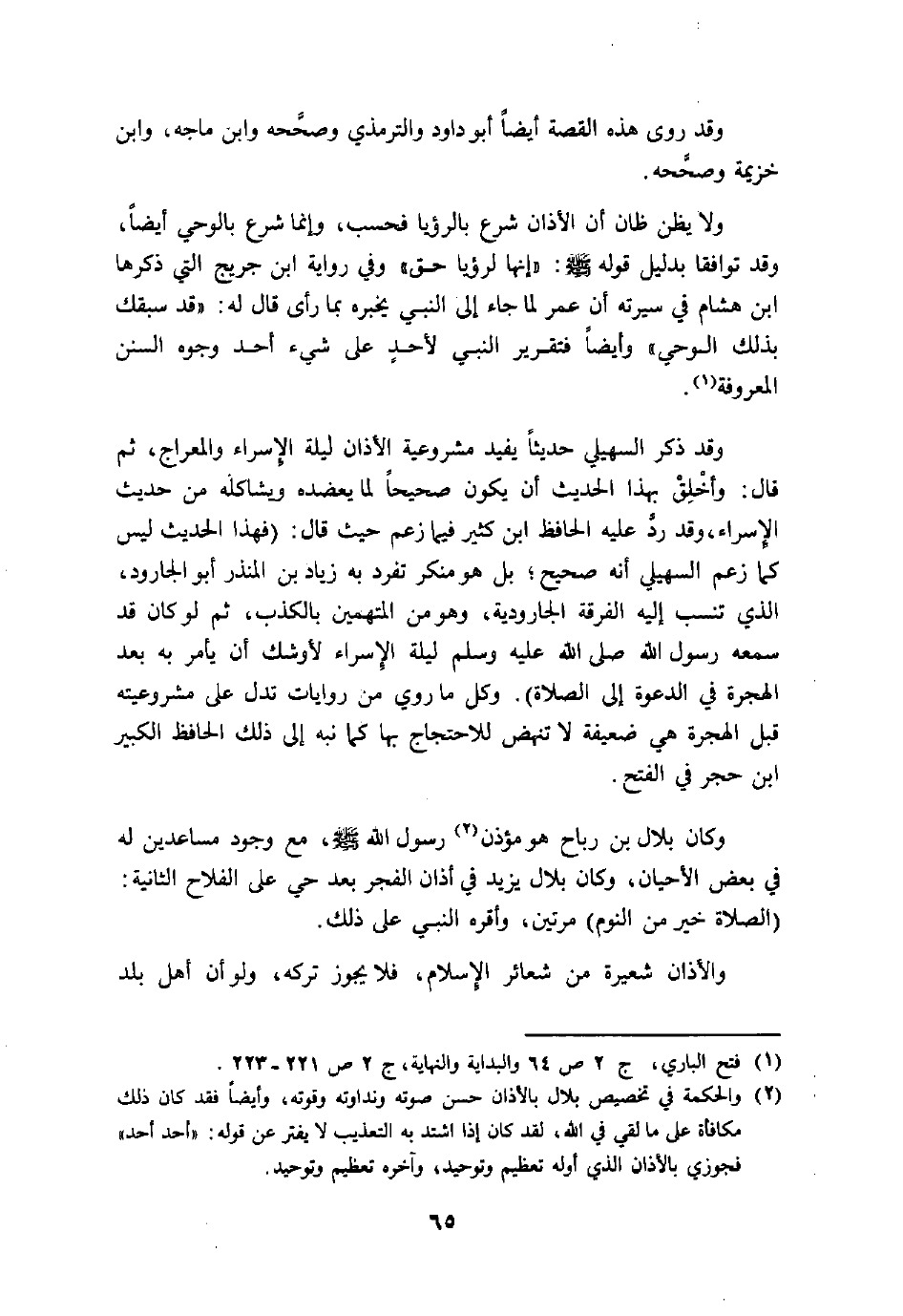 ولا يظن ظان أن الأذان شرع بالرؤيا فحسب، وإنما شرع بالوحي أيضا، وقد توافقا بدليل قوله صلى الله عليه وسلم: «إنها لرؤيا حق» وفي رواية ابن جريج التي ذكرها ابن هشام في سيرته أن عمر لما جاء إلى النبي يخبره بما رأى قال له: «قد سبقك بذلك الوحي» وأيضا فتقرير النبي لأحد على شيء أحد وجوه السنن المعروفة «1» .