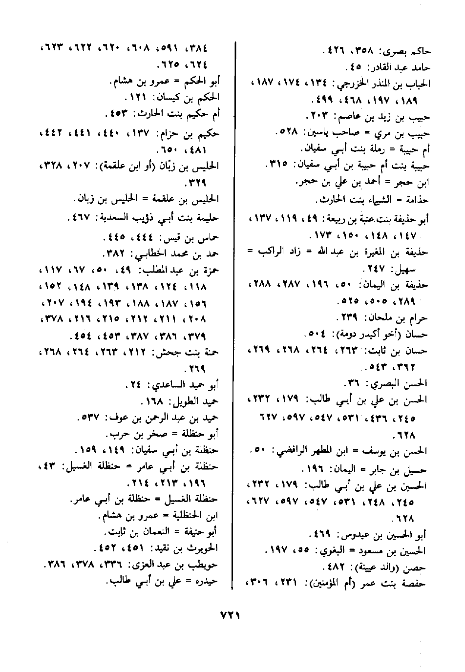 حفصة بنت عمر (أم المؤمنين) : 231، 306، 384، 591، 608، 620، 622، 623، 624، 625.