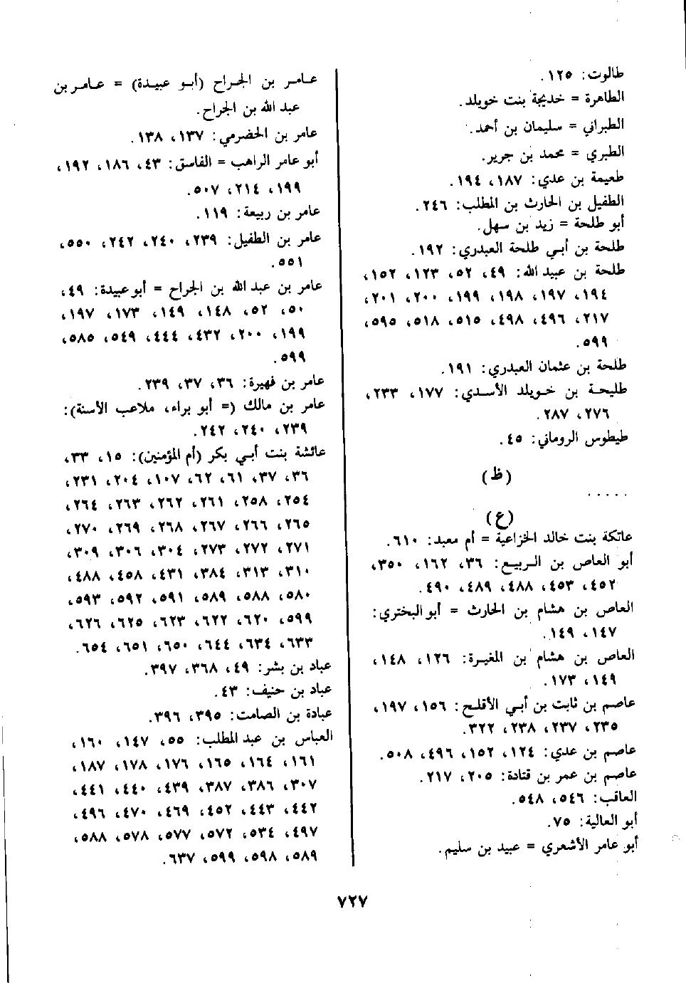 عامر بن عبد الله بن الجراح- أبو عبيدة: 49، 50، 52، 148، 149، 173، 197، 199، 200، 432، 444، 549، 585، 599.