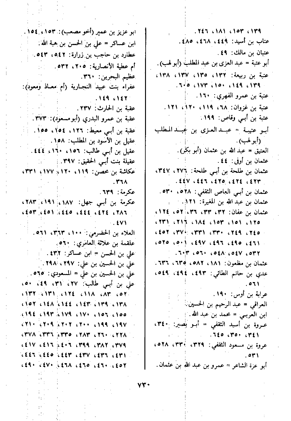 عتبة بن ربيعة: 132، 135، 137، 138، 139، 149، 150، 173، 605.