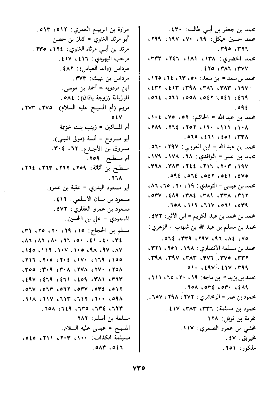 محمد بن مسلمة الأنصاري: 198، 251، 321، 332، 375، 376، 383، 397، 398، 399، 417، 497، 510.