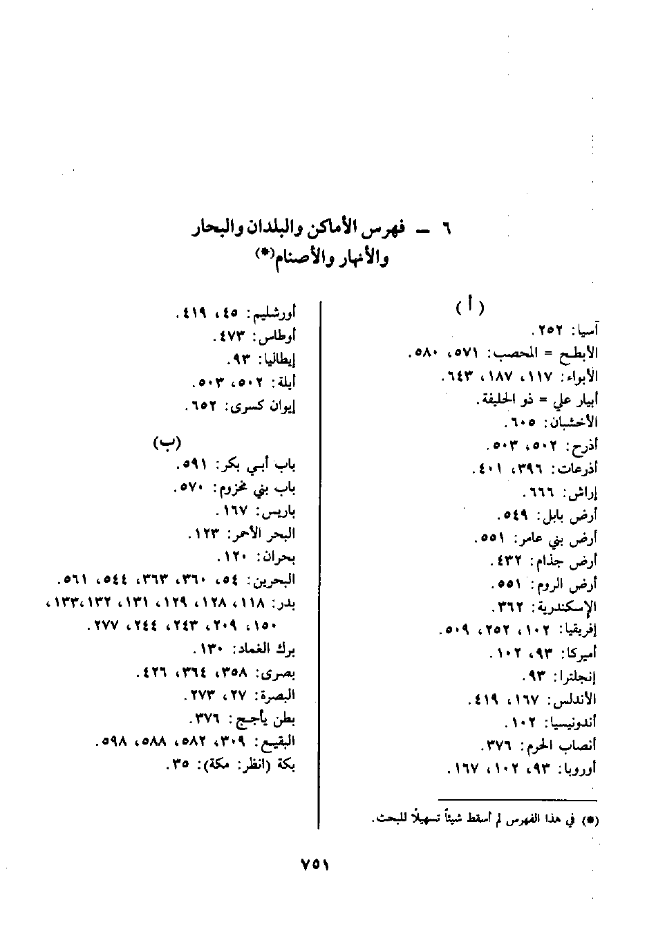 6- فهرس الأماكن والبلدان والبحار والأنهار والأصنام