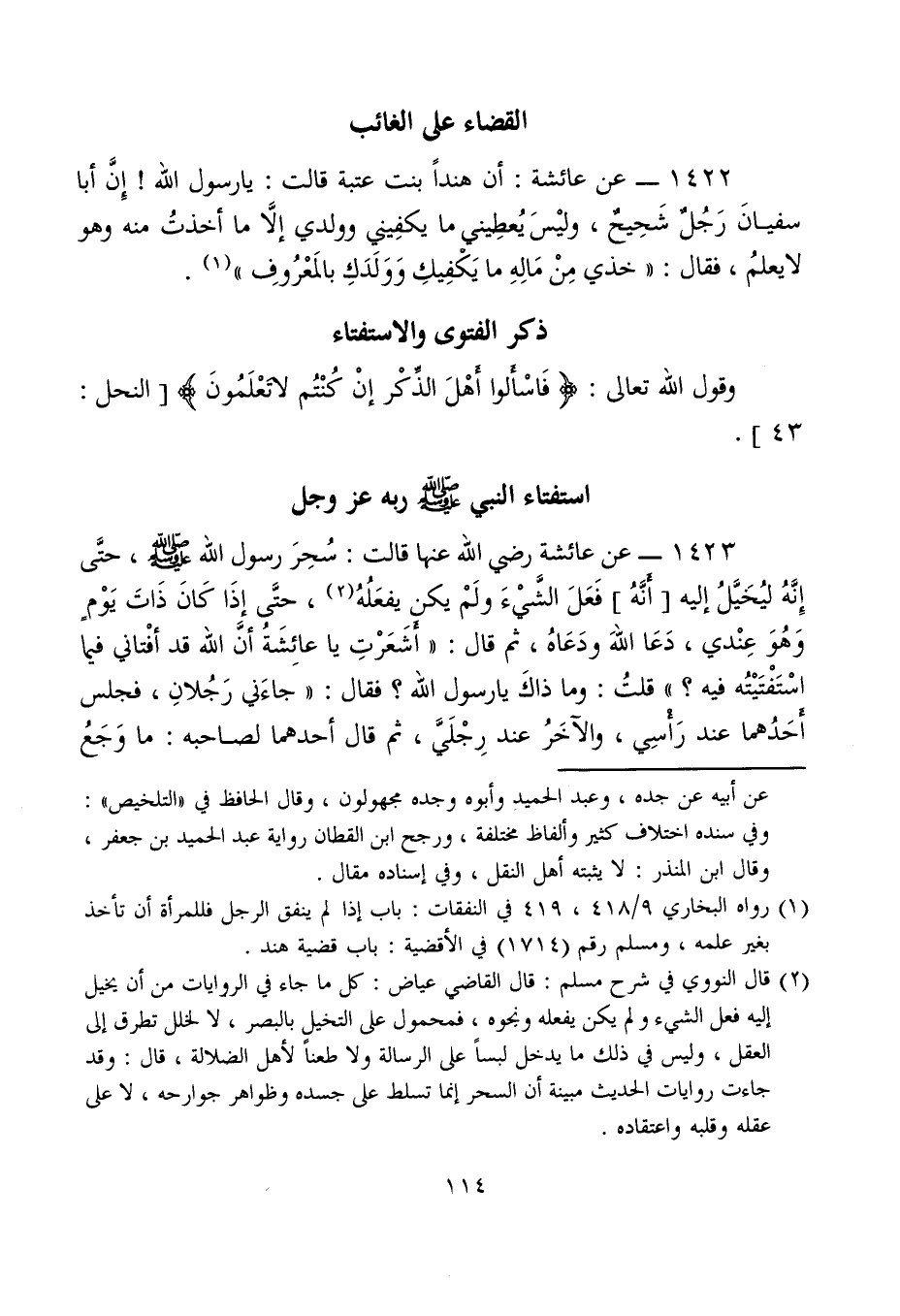 (¬1) رواه البخاري 9/ 418، 419 في النفقات: باب إذا لم ينفق الرجل فللمرأة أن تأخذ بغير علمه، ومسلم رقم (1714) في الأقضية: باب قضية هند.