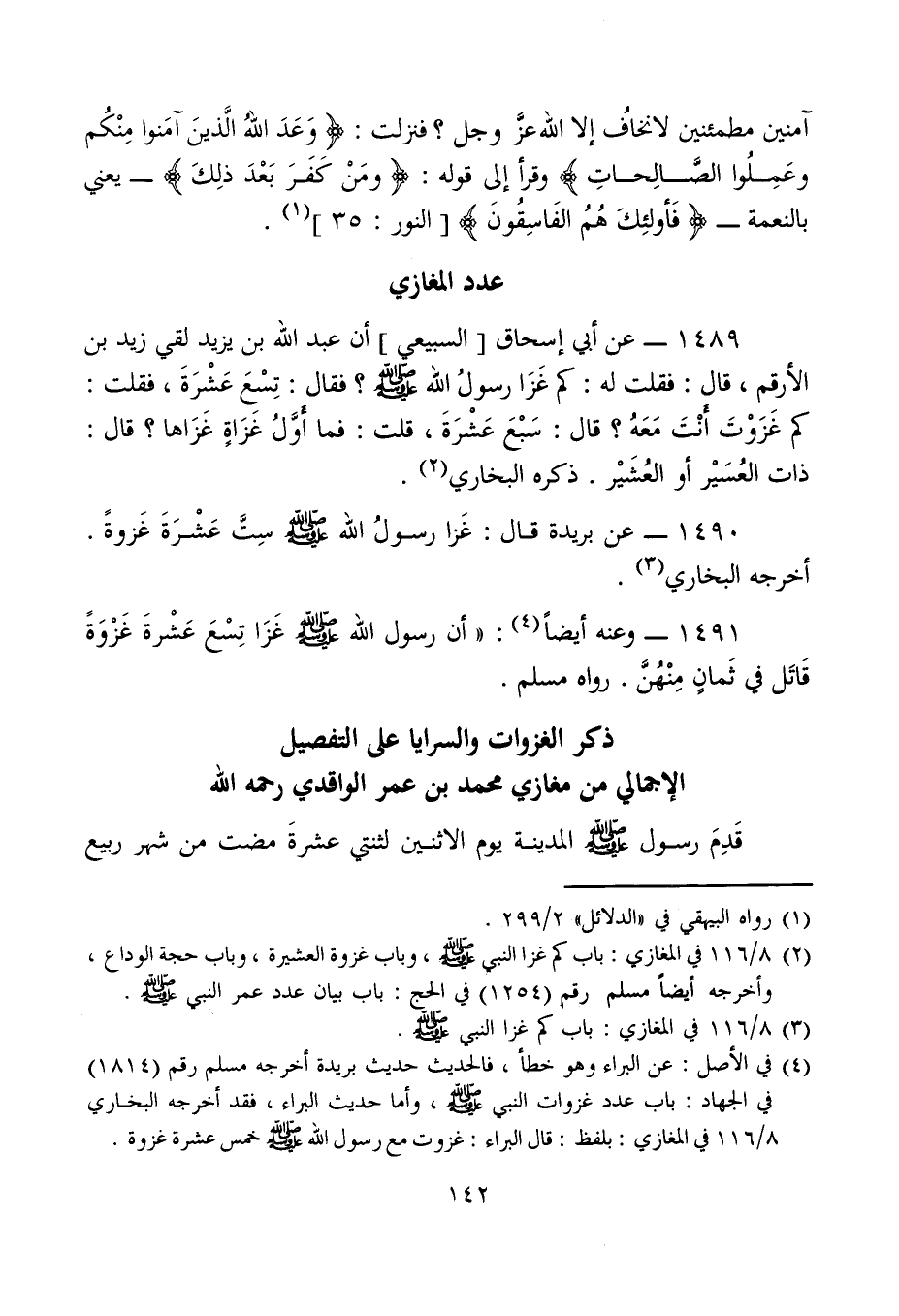 ذكر الغزوات والسرايا على التفصيل الإجمالي من مغازي محمد بن عمر الواقدي رحمه الله