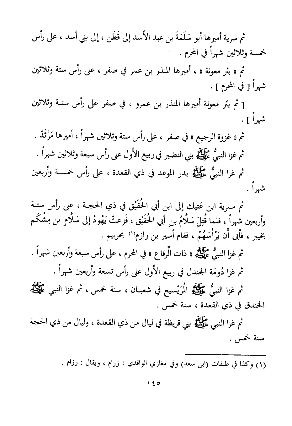 ثم "بئر معونة"، أميرها المنذر بن عمر في صفر، على رأس ستة وثلاثين شهرًا [في المحرم].