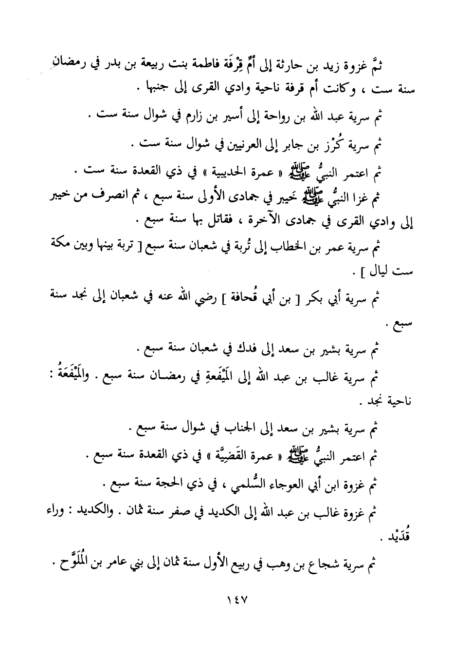ثم سرية أبي بكر [بن أبي قُحافة] رضي الله عنه في شعبان إلى نجد سنة سبع.