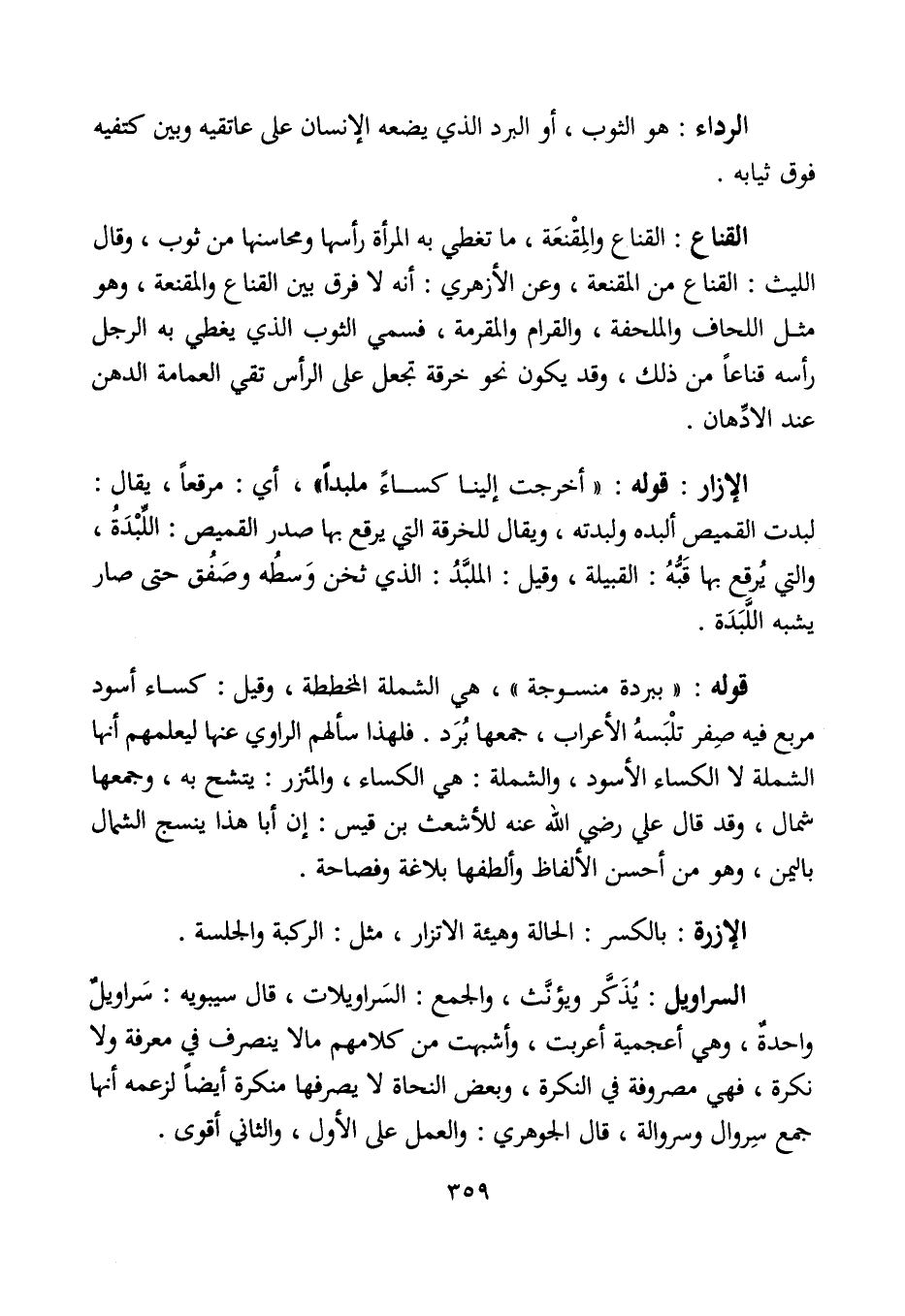 قوله: "ببردة منسوجة"، هي الشملة المخططة، وقيل: كساء أسود مربع فيه صِفر تلْبَسهُ الأعراب، جمعها بُرَد. فلهذا سألهم الراوي عنها ليعلمهم أنها الشملة لا الكساء الأسود، والشملة: هي الكساء، والمئزر: يتشح به، وجمعها شمال، وقد قال علي رضي الله عنه للأشعث بن قيس: إن أبا هذا ينسج الشمال باليمين، وهو من أحسن الألفاظ وألطفها بلاغة وفصاحة.