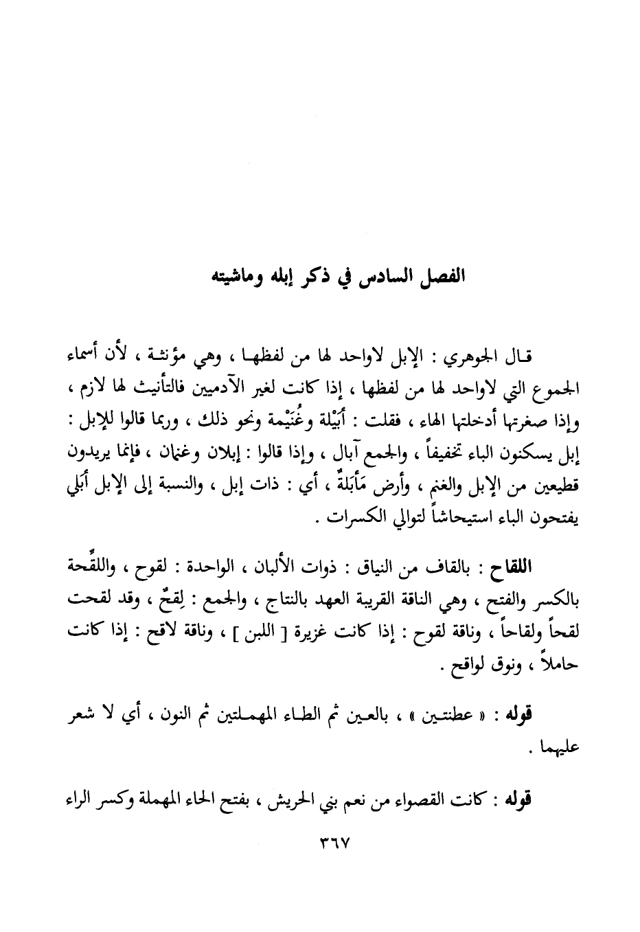 الفصل السادس في ذكر إبله وماشيته