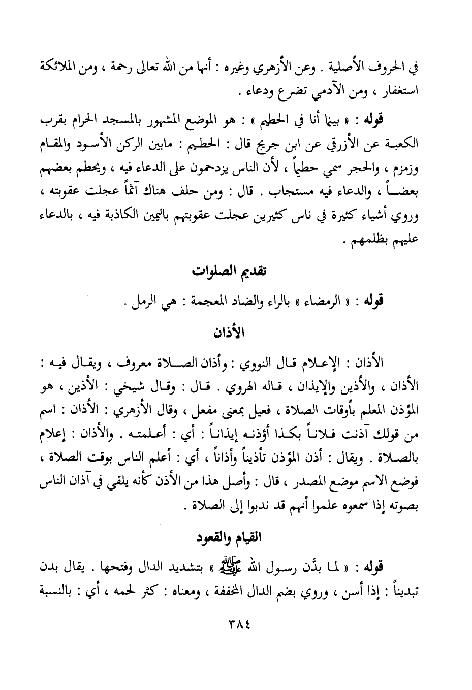 الأذان: الإعلام قال النووي: وأذان الصلاة معروف، ويقال فيه: الأذان، والأذين والإيذان، قاله الهروي. قال: وقال شيخي: الأذين، هو المؤذن المعلم بأوقات الصلاة، فعيل بمعنى مفعل، وقال الأزهري: الأذان: اسم من قولك آذنت فلانًا بكذا أؤذنه إيذانًا: أي: أعلمته. والأذان: إعلام بالصلاة. ويقال: أذن المؤذن تأذينًا وأذانًا، أي: أعلم الناس بوقت الصلاة، فوضع الاسم موضع المصدر، قال: وأصل هذا من الأذن كأنه يلقي في آذان الناس بصوته إذا سمعوه علموا أنهم قد ندبوا إلى الصلاة.