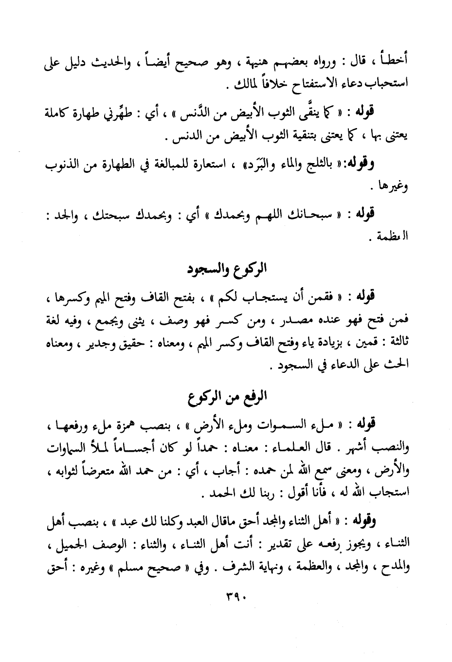قوله: "ملء السموات وملء الأرض"، بنصب همزة ملء ورفعها، والنصب أشهر. قال العلماء: معناه: حمدًا لو كان أجسامًا لملأ السماوات والأرض، ومعنى سمع الله لمن حمده: أجاب، أي: من حمد الله متعرضًا لثوابه، استجاب الله له، فأنا أقول: ربنا لك الحمد.