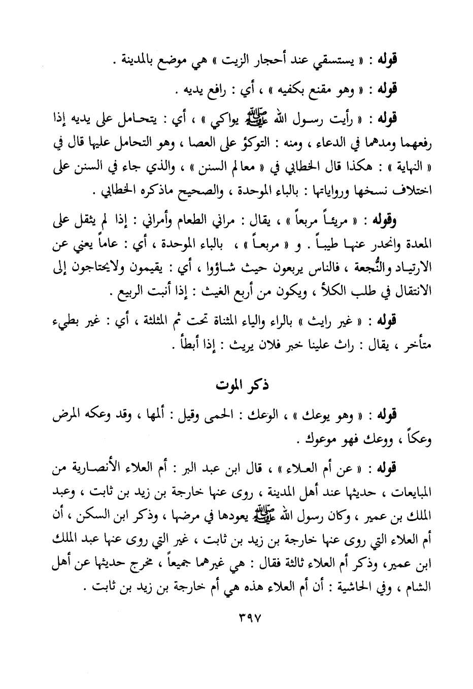 قوله: "عن أم العلاء"، قال ابن عبد البر: أم العلاء الأنصارية من المبايعات، حديثها عند أهل المدينة، روى عنها خارجة بن زيد بن ثابت، وعبد الملك بن عمير، وكان رسول الله - صلى الله عليه وسلم - يعودها في مرضها، وذكر ابن السكن، أن أم العلاء التي روى عنها خارجة بن زيد بن ثابت، غير التي روى عنها عبد الملك بن عمير، وذكر أم العلاء ثالثة فقال: هي غيرهما جميعًا، مخرج حديثها عن أهل الشام، وفي الحاشية: أن أم العلاء هذه هي أم خارجة بن زيد بن ثابت.