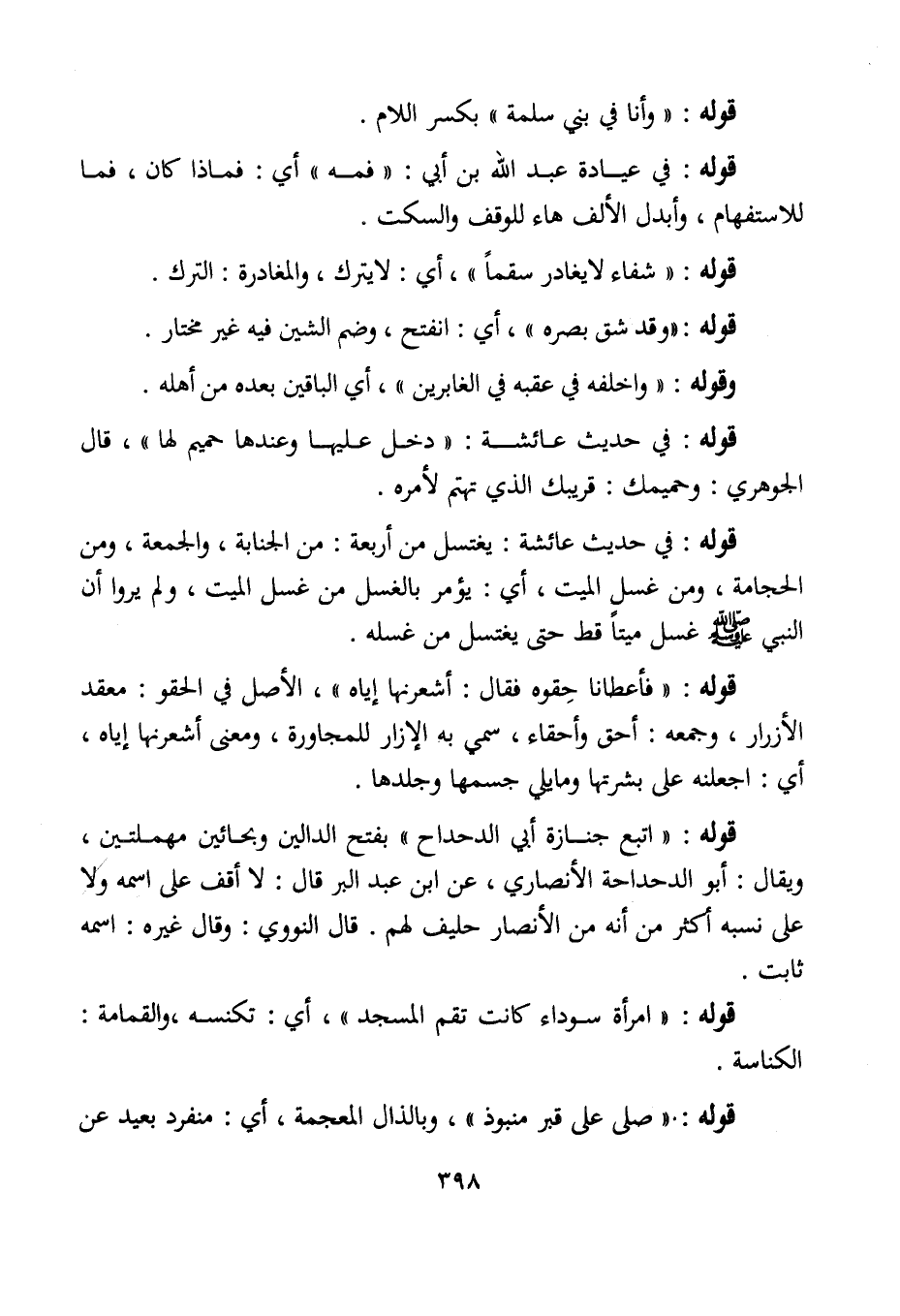 قوله: في حديث عائشة: يغتسل من أربعة: من الجنابة، والجمعة، ومن الحجامة، ومن غسل الميت، أبي: يؤمر بالغسل من غسل الميت، ولم يروا أن النبي - صلى الله عليه وسلم - غسل ميتًا قط حتى يغتسل من غسله.