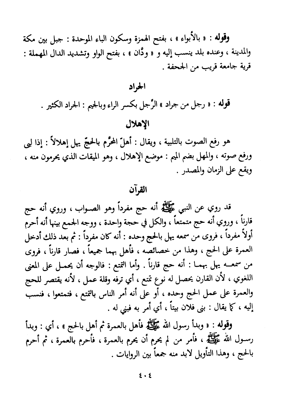 قد روي عن النبي - صلى الله عليه وسلم - أنه حج مفردًا وهو الصواب، وروي أنه حج قارنًا، وروي أنه حج متمتعًا، والكل في حجة واحدة، ووجه الجمع بينها أنه أحرم أولًا مفردًا، فروى من سمعه يهل بالحج وحده: أنه كان مفردًا: ثم بعد ذلك أدخل العمرة على الحج، وهذا من خصائصه، فأهل بهما جميعًا، فصار قارنًا، فروى من سمعه يهل بهما: أنه حج قارنًا. وأما التمتع: فالوجه أن يحمل على المعنى اللغوي، لأن القارن يحصل له نوع تمتع، أي ترفه وقلة عمل، لأنه يقتصر للحج والعمرة على عمل الحج وحده، أو على أنه أمر الناس بالتمتع، فتمتعوا، فنسب إليه، كما يقال: بنى فلان بيتًا، أي أمر به فبني له.
