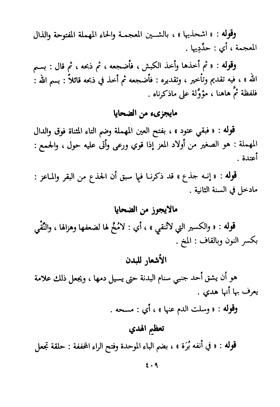 وقوله: "ثم أخذها وأخذ الكبش، فأضجعه، ثم ذبحه، ثم قال: بسم الله"، فيه تقديم وتأخير، وتقديره: فأضجعه ثم أخذ في ذبحه قائلًا: بسم الله: فلفظة ثمَّ ها هنا، مؤوَّلة على ما ذكرناه.