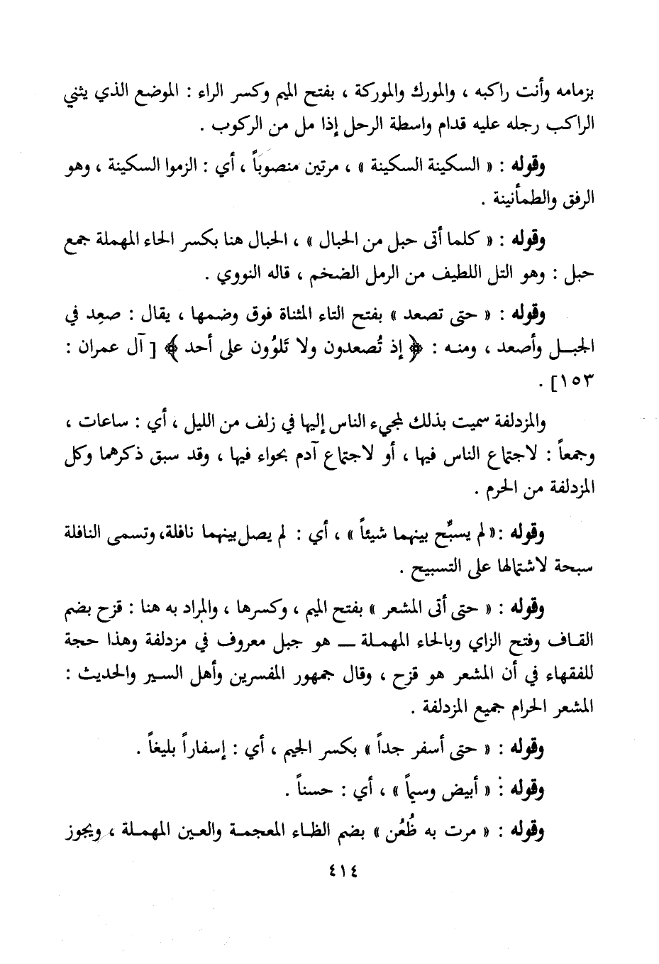 وقوله: "السكينة السكينة"، مرتين منصوبًا، أي: الزموا السكينة، وهو الرفق والطمأنينة.