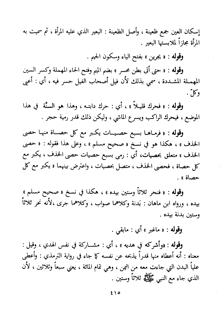 وقوله: "حتى أتى بطن محسر" بضم الميم وفتح الحاء المهملة كسر السين المهملة المشددة، سمي بذلك لأن فيل أصحاب الفيل حسر فيه، أي: أعيى وكلّ.