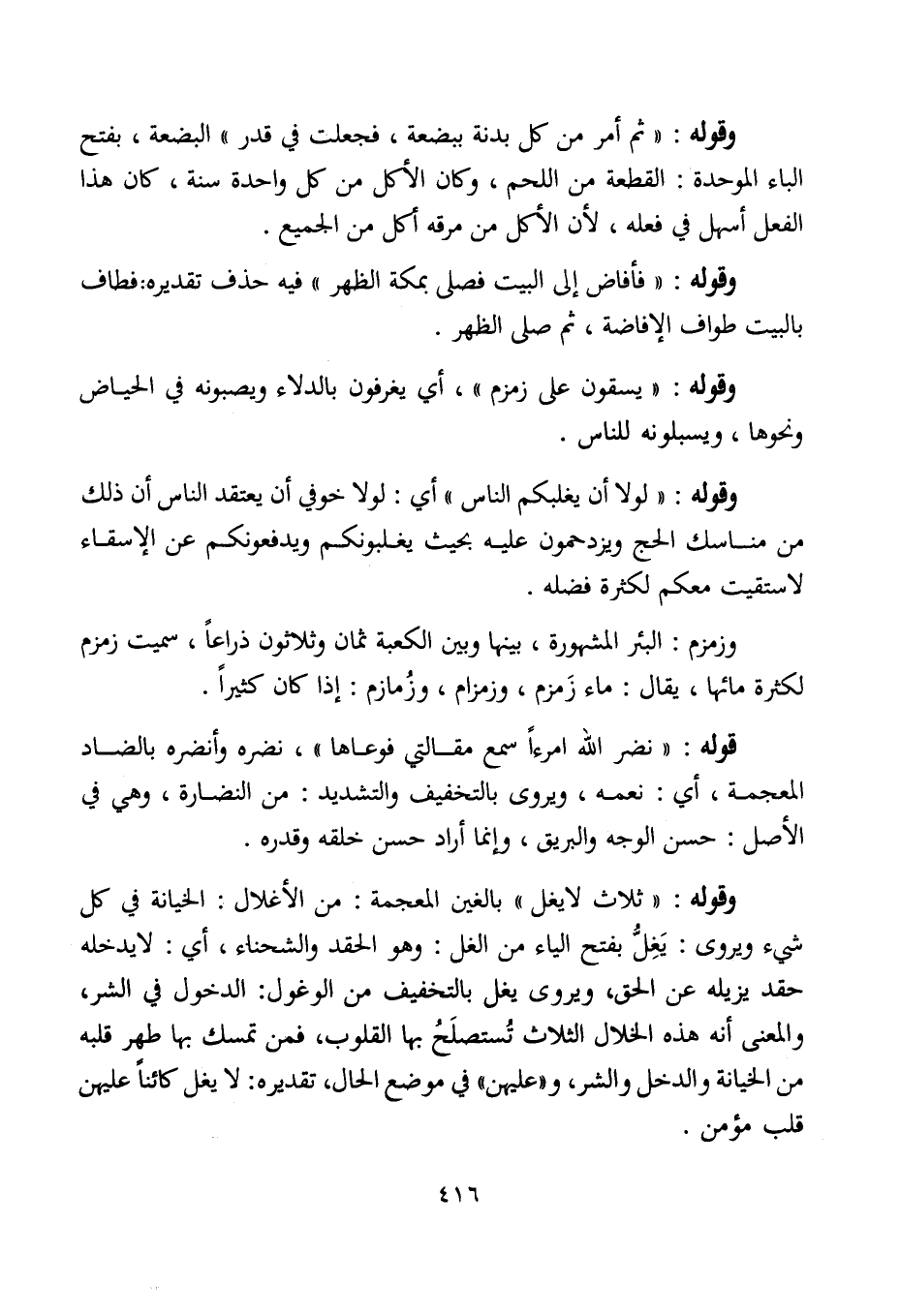 قوله: "نضر الله امرءًا سمع مقالتي فوعاها"، نضره وأنضره بالضاد المعجمة، أي: نعمه، ويروى بالتخفيف والتشديد: من النضارة، وهي في الأصل: حسن الوجه والبريق، وإنما أراد حسن خلقه وقدره.