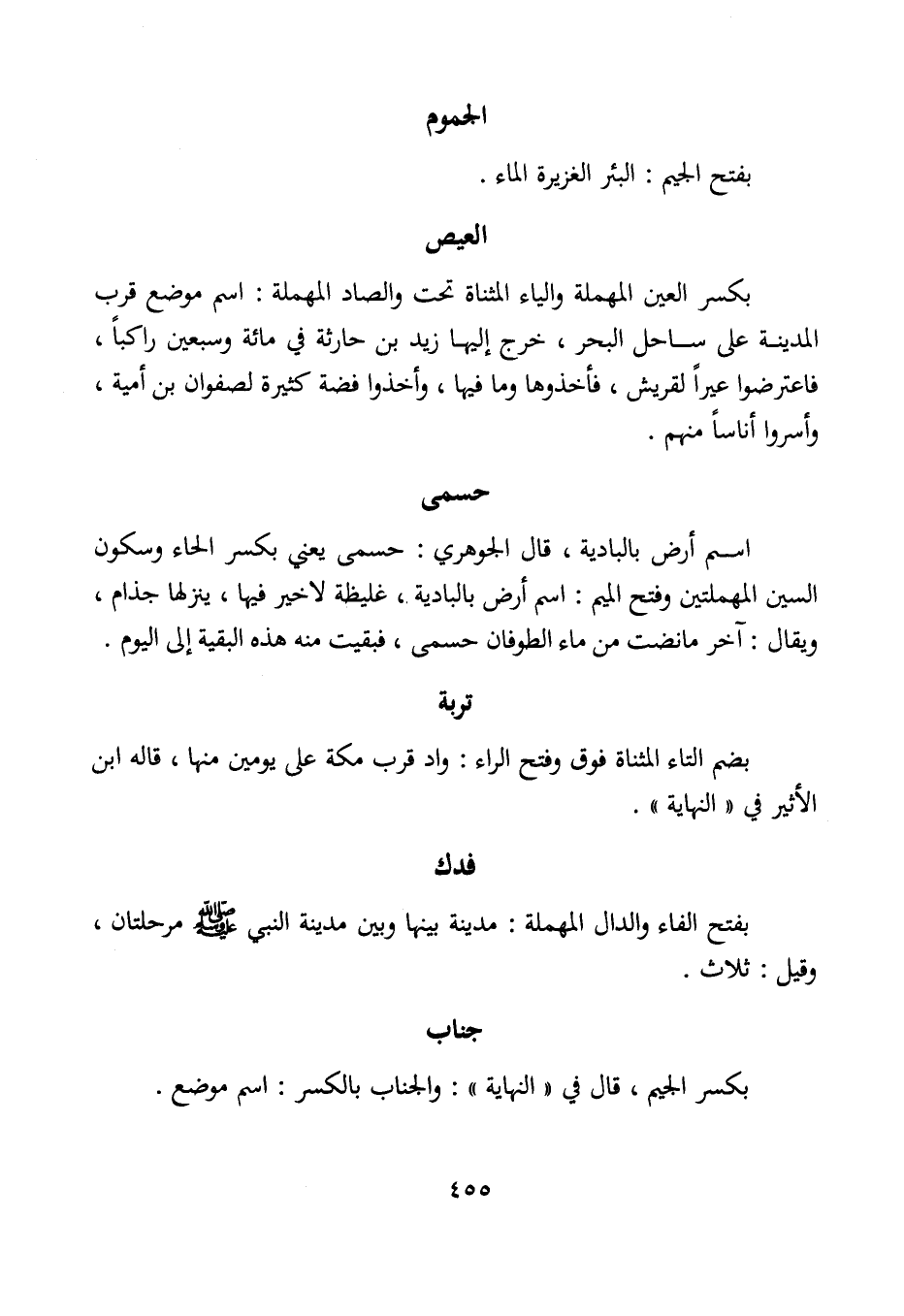 بكسر العين المهملة والياء المثناة تحت والصاد المهملة: اسم موضع قرب المدينة على ساحل البحر، خرج إليها زيد بن حارثة في مائة وسبعين راكبًا، فاعترضوا عيرًا لقريش، فأخذوها وما فيها، وأخذوا فضة كثيرة لصفوان بن أمية، وأسروا أناسًا منهم.