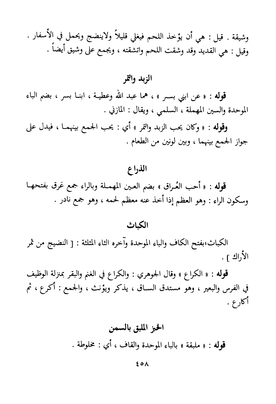 قوله: "الكراع" وقال الجوهري: والكراع في الغنم والبقر بمنزلة الوظيف في الفرس والبعير، وهو مستدق الساق، يذكر ويؤنث، والجمع: أكرع، ثم أكارع.