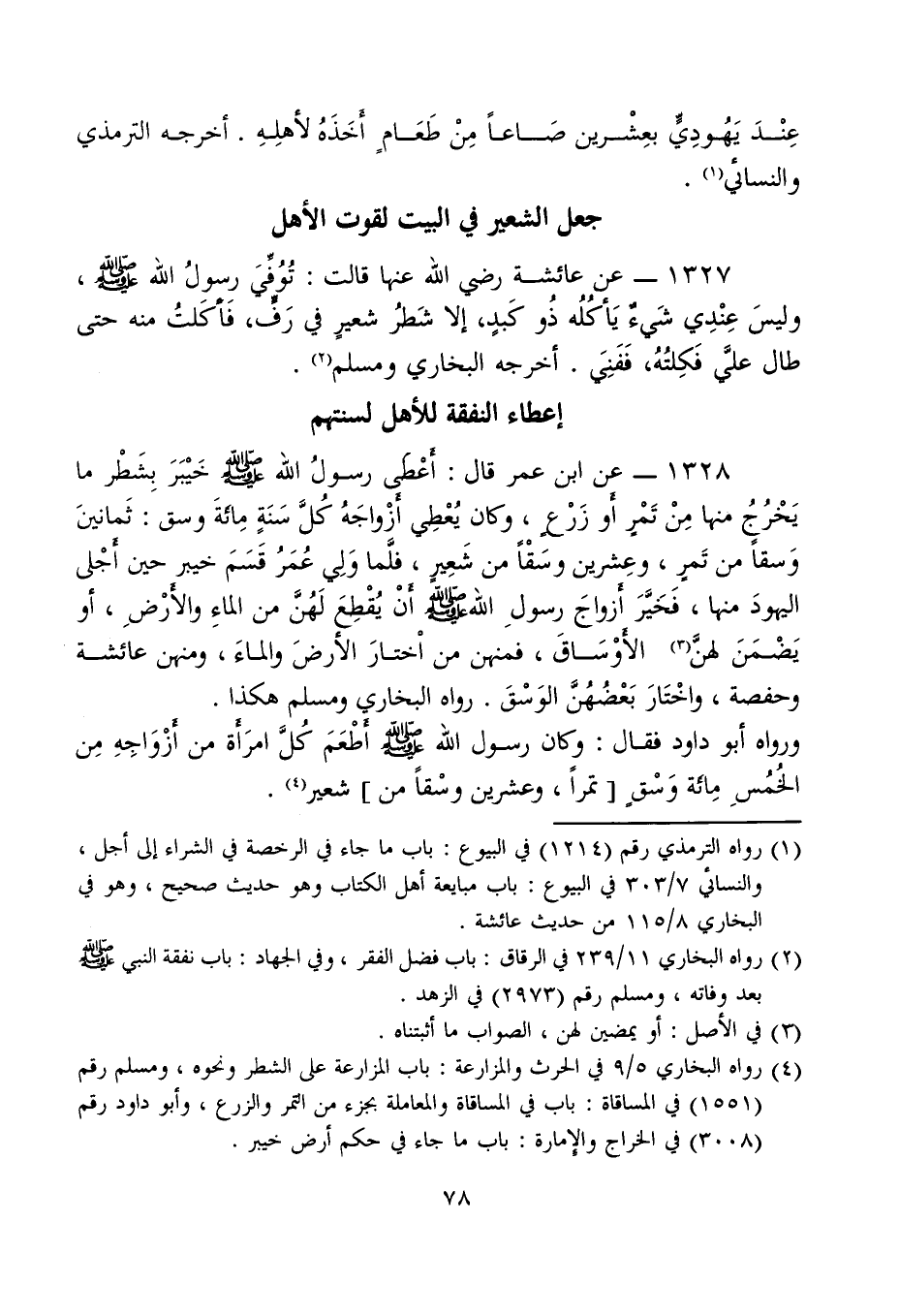 (¬2) رواه البخاري 11/ 239 في الرقاق: باب فضل الفقر، وفي الجهاد: باب نفقة النبي - صلى الله عليه وسلم - بعد وفاته، ومسلم رقم (2973) في الزهد.