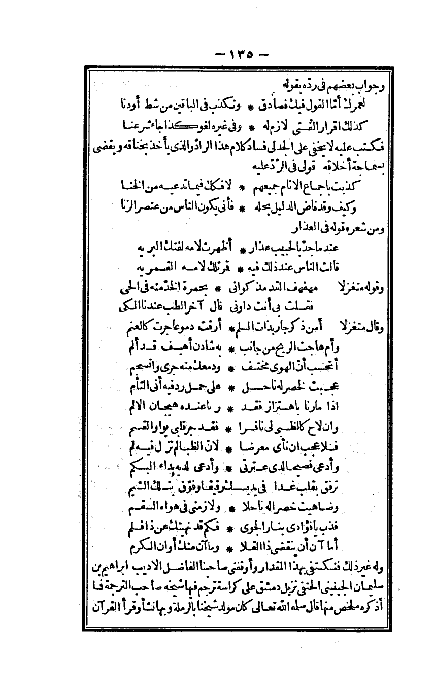 فَكتب عَلَيْهِ لَا يخفى على الجدلي فَسَادًا كَلَام هَذَا الرَّاد الَّذِي يَأْخُذ بخناقه وَيَقْضِي بسماحة أخلاقه قولي فِي الرَّد عَلَيْهِ