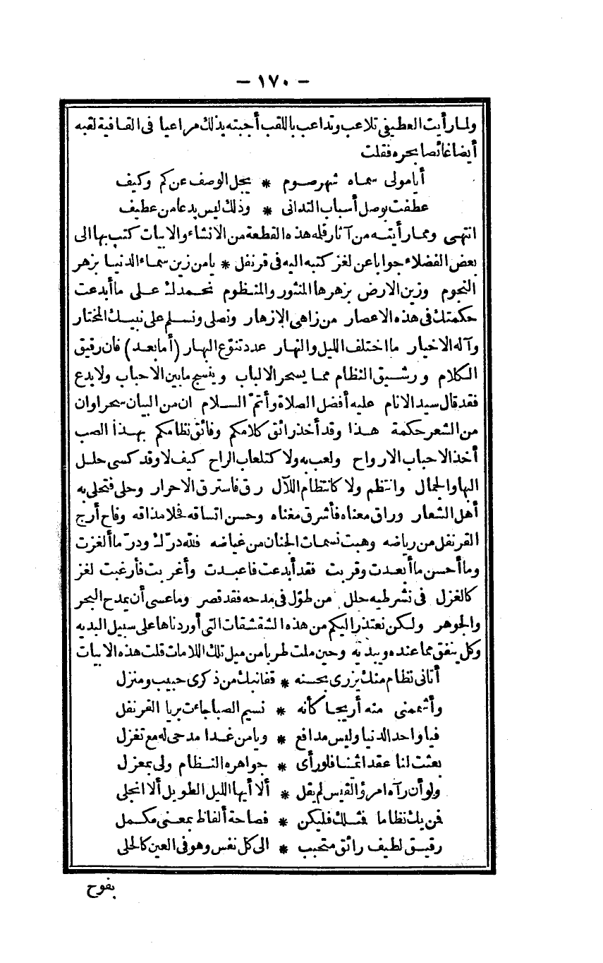 وَلما رَأَيْت العطيفي تلاعب وتداعب باللقب أَجَبْته بذلك مراعيا فِي القافية لقبه أَيْضا غائصا بحره فَقلت