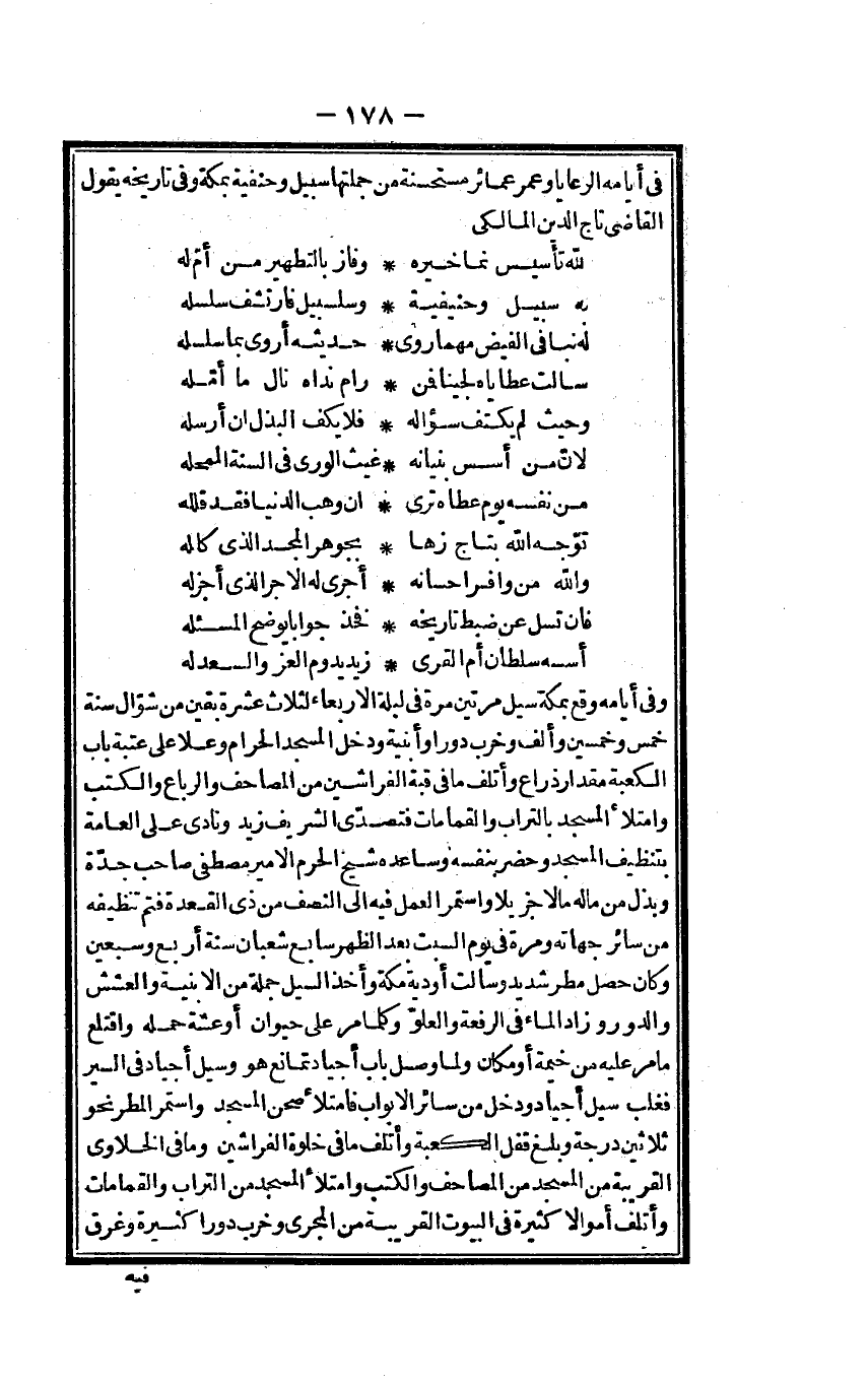 فِي أَيَّامه الرعايا وَعمر عمائر مستحسنة من جُمْلَتهَا سَبِيل وحنفية بِمَكَّة وَفِي تَارِيخه يَقُول القَاضِي تَاج الدّين الْمَالِكِي