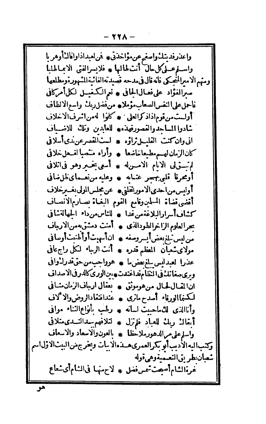(غرَّة الشَّام أَصبَحت شمس فضل ... لَاحَ مِنْهَا فِي الشَّام أَي شُعَاع)