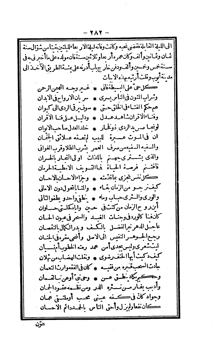 (كل حَيّ على البسيطة فَانِي ... غير وَجه الْمُهَيْمِن الرَّحْمَن)