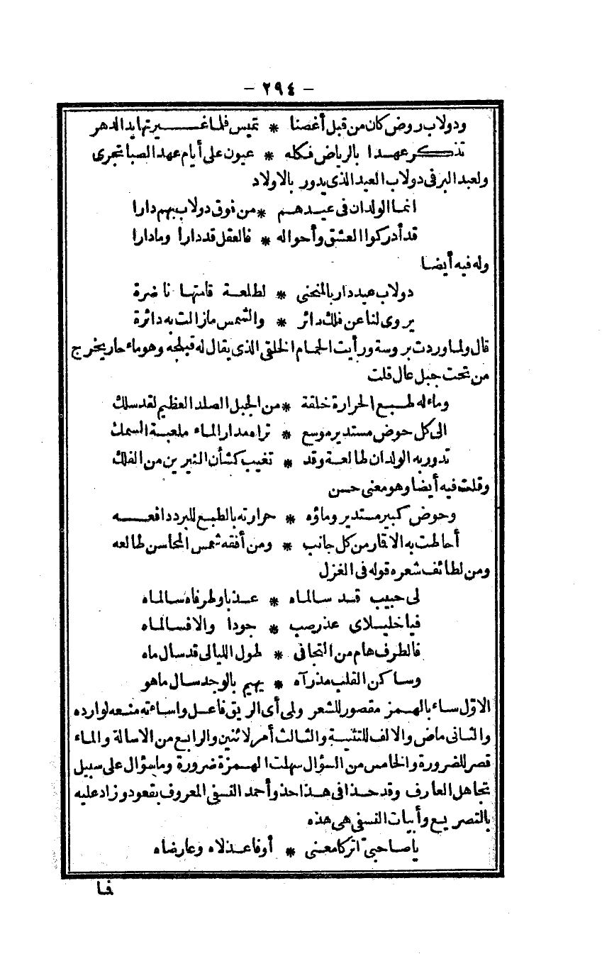 (إِلَى كل حَوْض مستدير موسع ... ترَاهُ مدَار المَاء ملعبه السّمك)