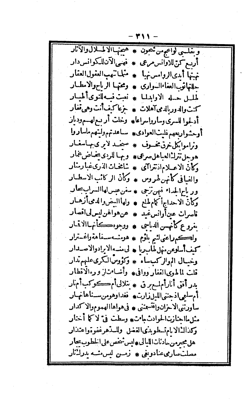 (كنت والدور بالدمى آهلات ... جزعاً كَيفَ أَنْت وَهِي قفار)