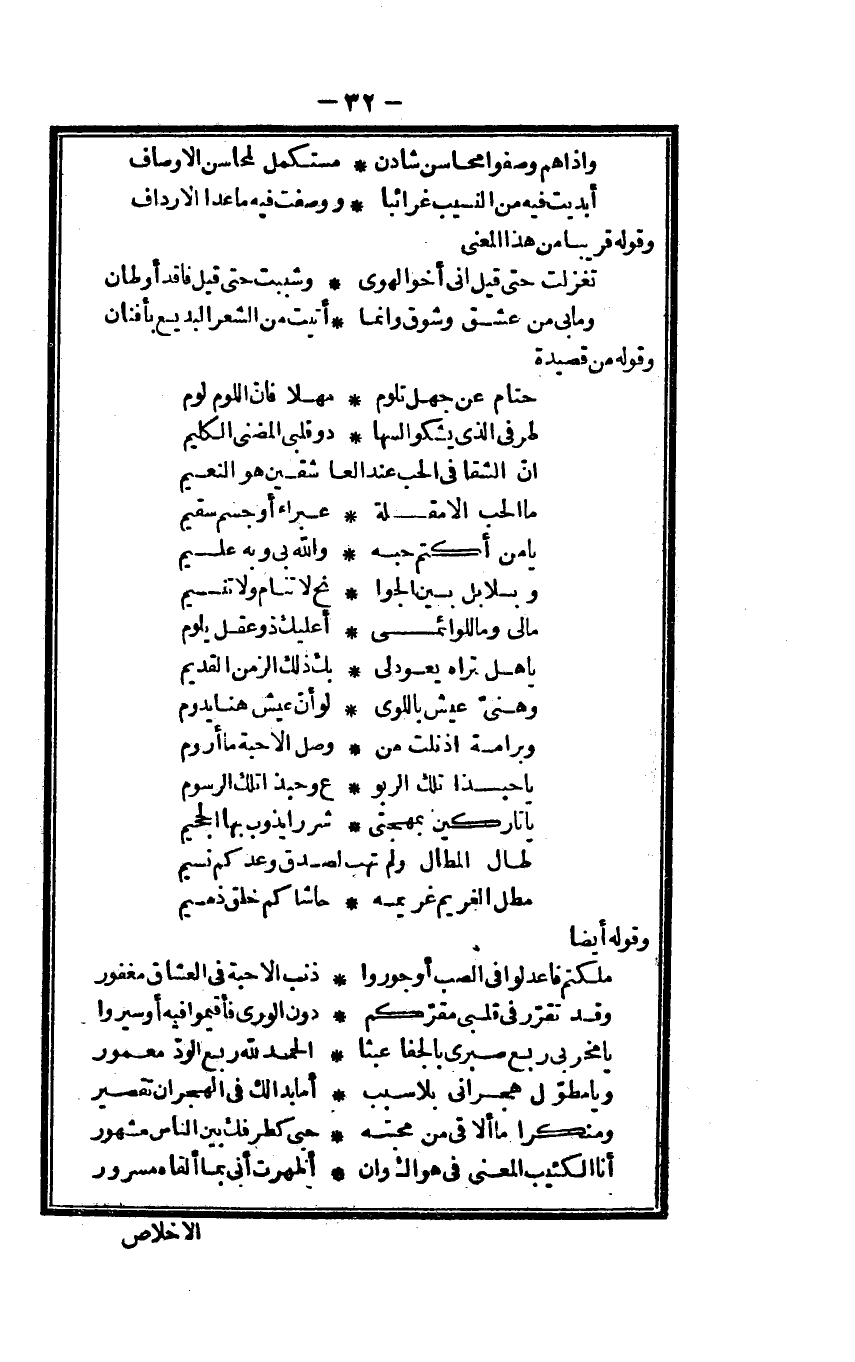 (إِن الشقا فِي الْحبّ عِنْد ... العاشقين هُوَ النَّعيم)