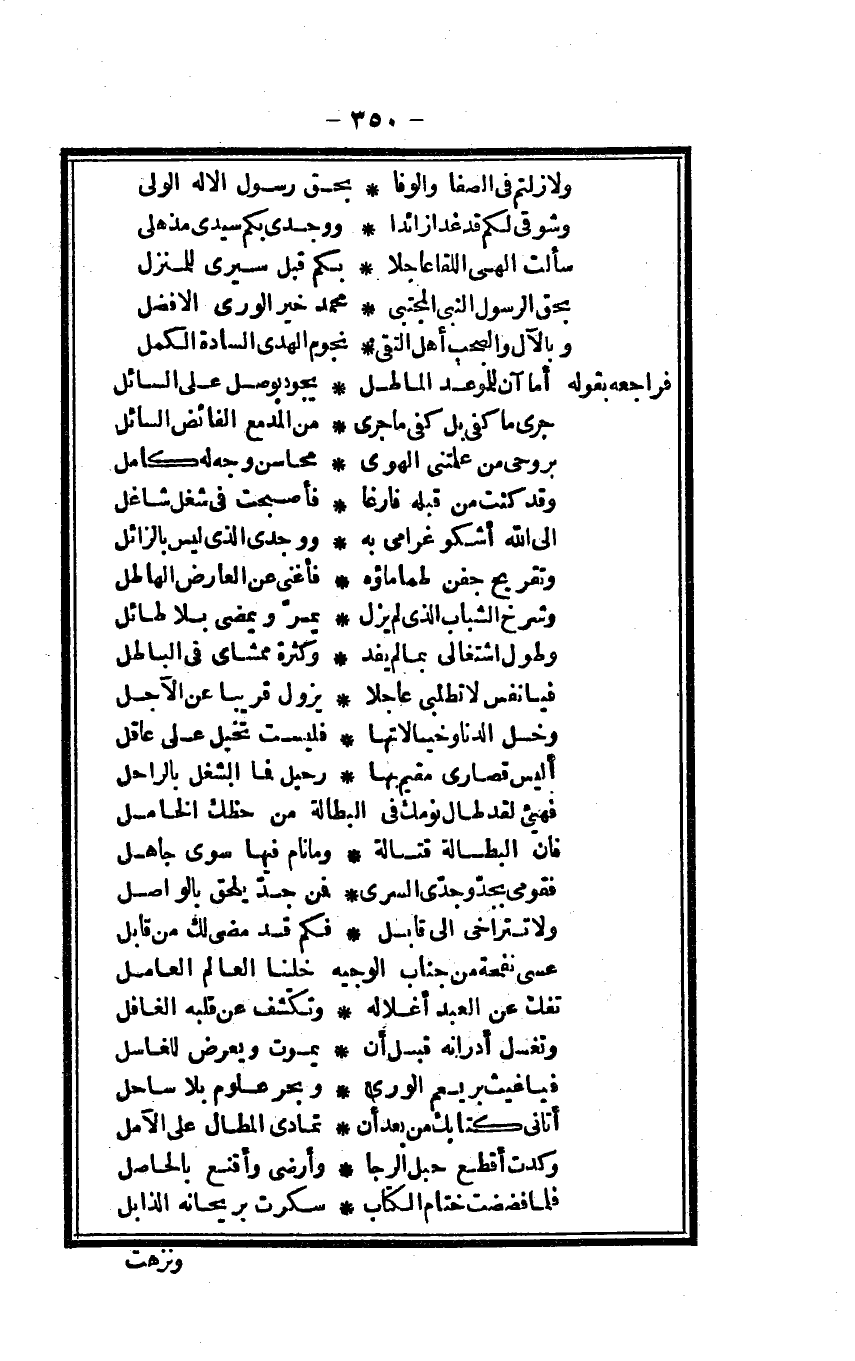 (وَلَا زلتم فِي الصَّفَا والوفا ... بِحَق رَسُول الاله الْوَلِيّ)