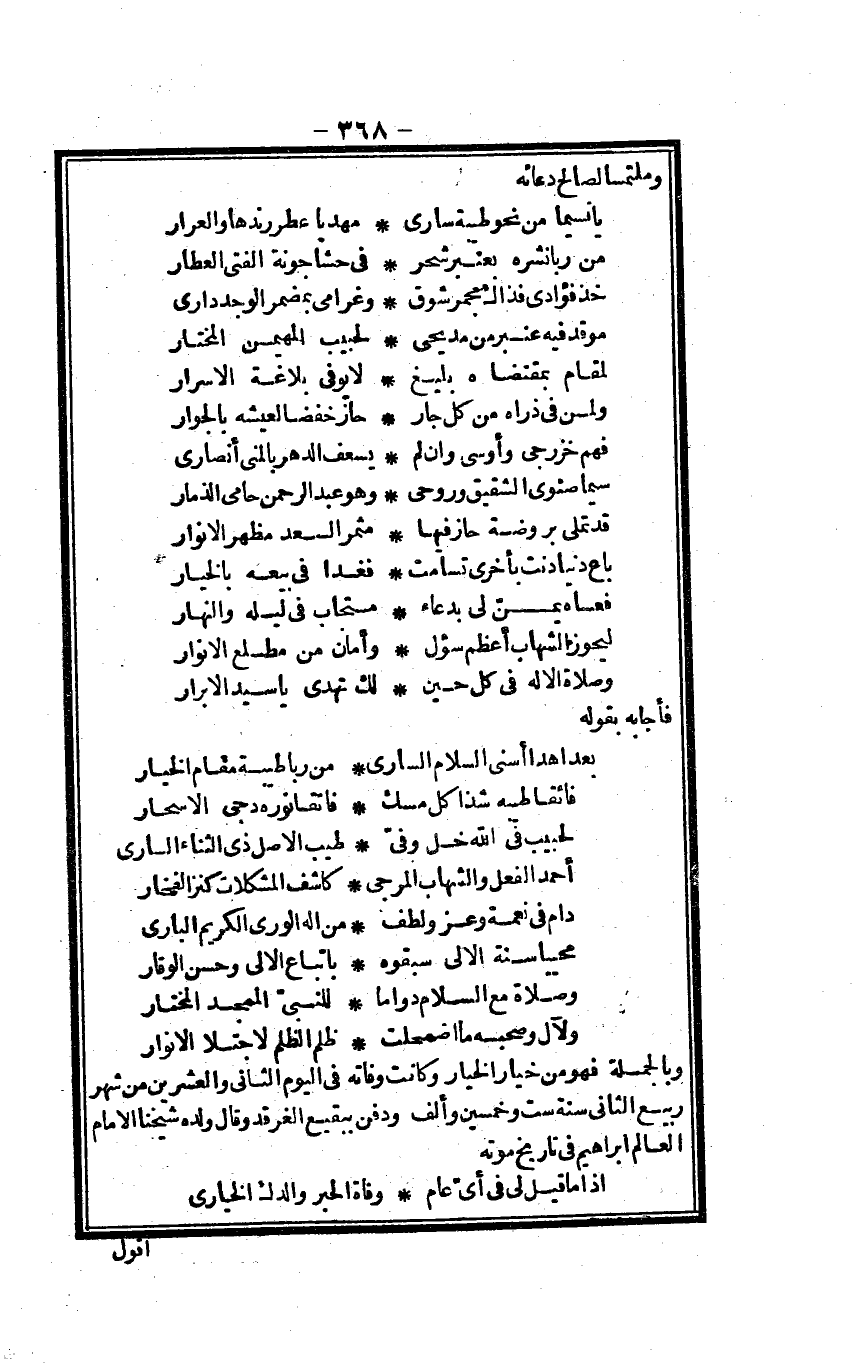 (ليحوز الشهَاب أعظم سؤل ... وأمان من مطلع الْأَنْوَار)