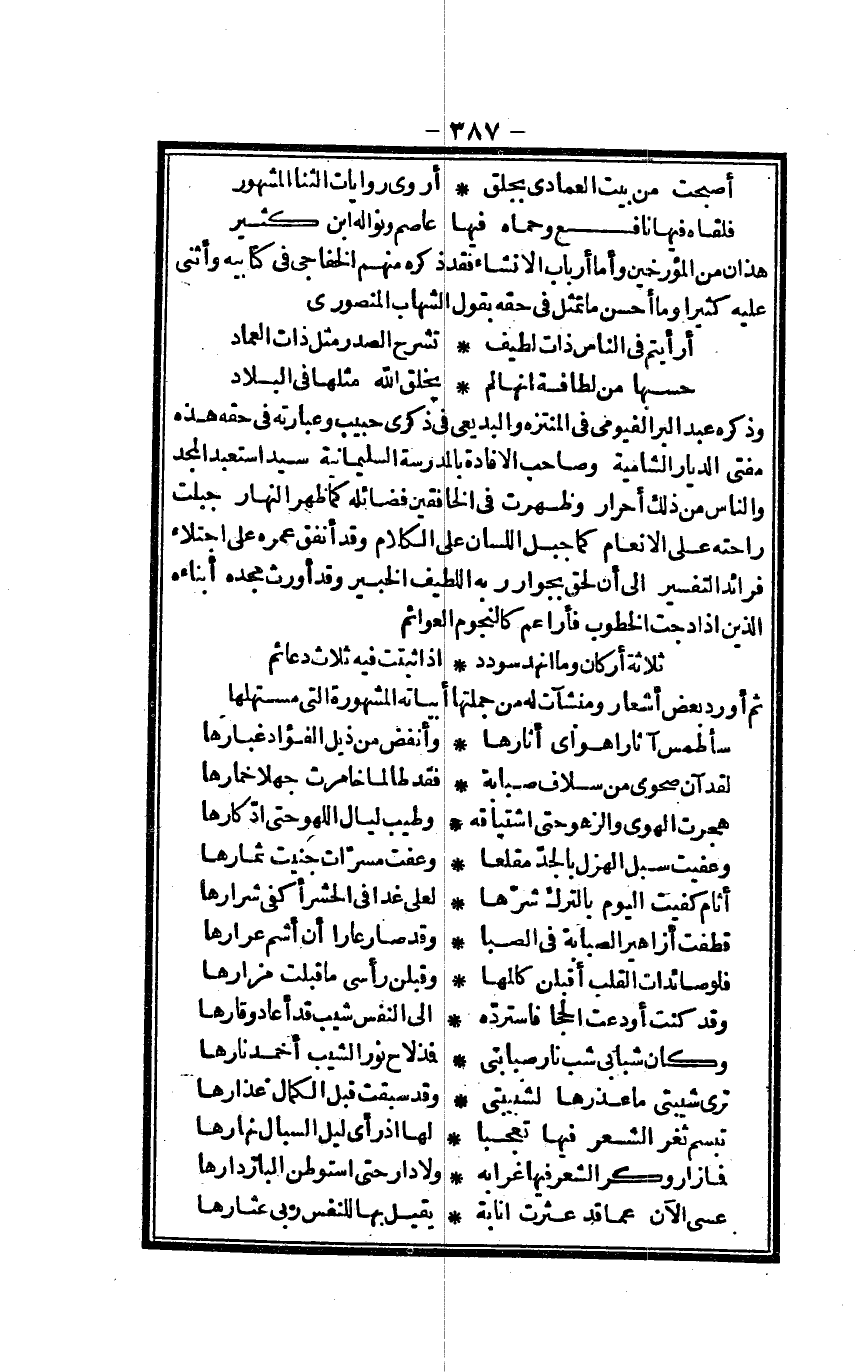 (أَصبَحت من بَيت الْعِمَاد بجلق ... أروي رِوَايَات الثنا الْمَشْهُور)