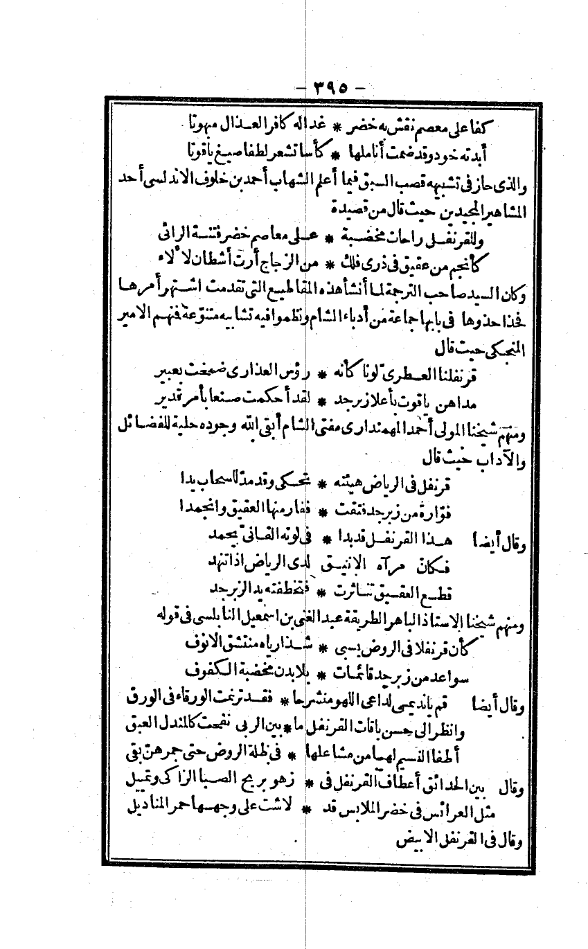 (وَانْظُر إِلَى حسن باقات القرنفل مَا ... بَين الربى نفحت كالمندل العبق)