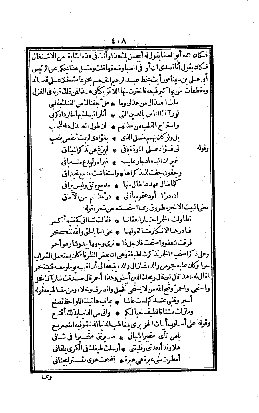 فَكَانَ عَمه أَبُو الصَّفَا يَقُول لَهُ أيجمل بك هَذَا وَأَنت فِي هَذِه المثابة من الِاشْتِغَال فَكَانَ يَقُول أَنا قصدي أَن أوفي الصباوة حَقّهَا قلت وَمثل هَذَا يحْكى عَن الرئيس أبي عَليّ بن سيناء وَرَأَيْت بِخَط عبد الرَّحِيم المترجم مجموعاً مُشْتَمِلًا على قصائد ومقطعات من بواكير طبعه فاخترت مِنْهَا اللَّائِق بكتابي هَذَا فَمن ذَلِك قَوْله فِي الْغَزل