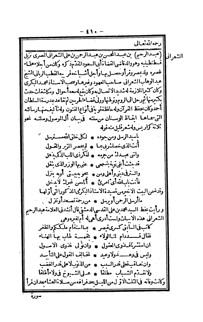 وَرَأَيْت بِخَط السَّيِّد مُحَمَّد بن عَليّ الْقُدسِي الدِّمَشْقِي قَالَ أَنْشدني الْعَلامَة عبد الرَّحِيم الشعراني هَذِه الأبيات وَلست أَدْرِي أَهِي لَهُ أم لغيره وَهِي