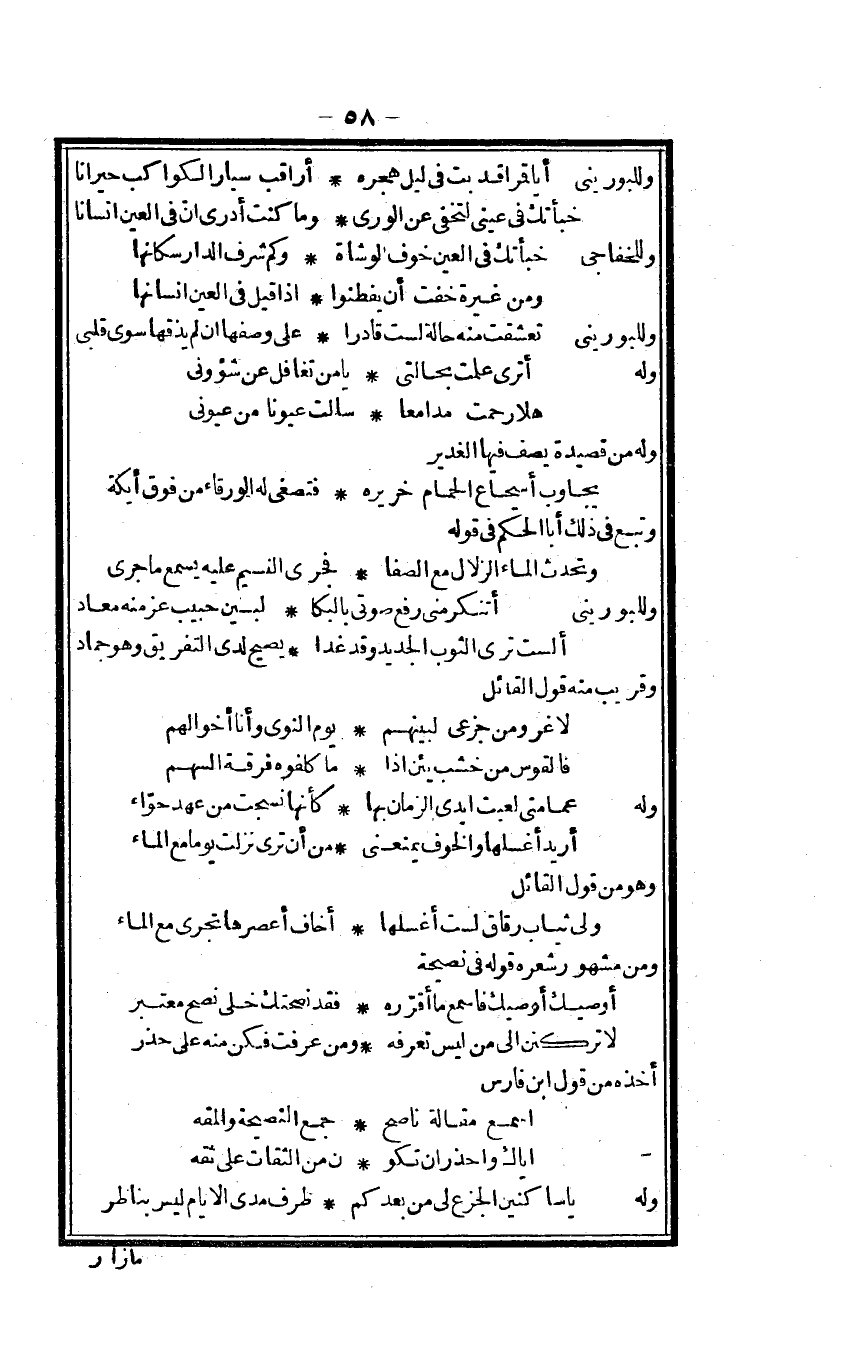 (أيا قمرا قد بت فِي ليل هِجْرَة ... أراقب سيار الْكَوَاكِب حيرانا)