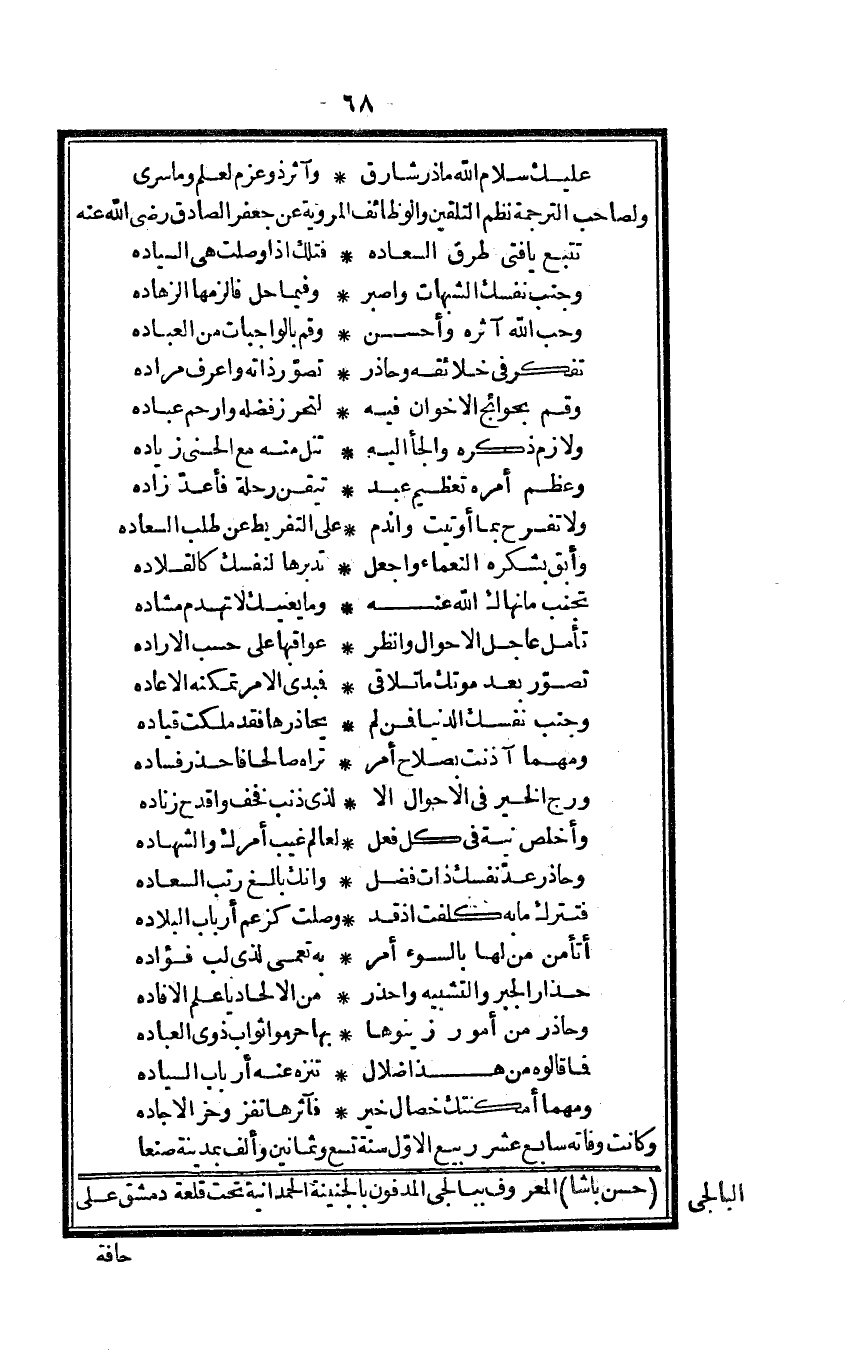 حسن باشا الْمَعْرُوف ببالجي المدفون بالجنينة الحمدانية تَحت قلعة دمشق على