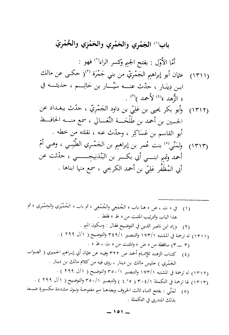 1311 - عُثْمَان أَبُو إِبْرَاهِيم الجمري من بني جَمْرَة حكى عَن مَالك ابْن دِينَار حدث عَنهُ سيار بن حَاتِم حَدِيثه فِي الزّهْد لِأَحْمَد