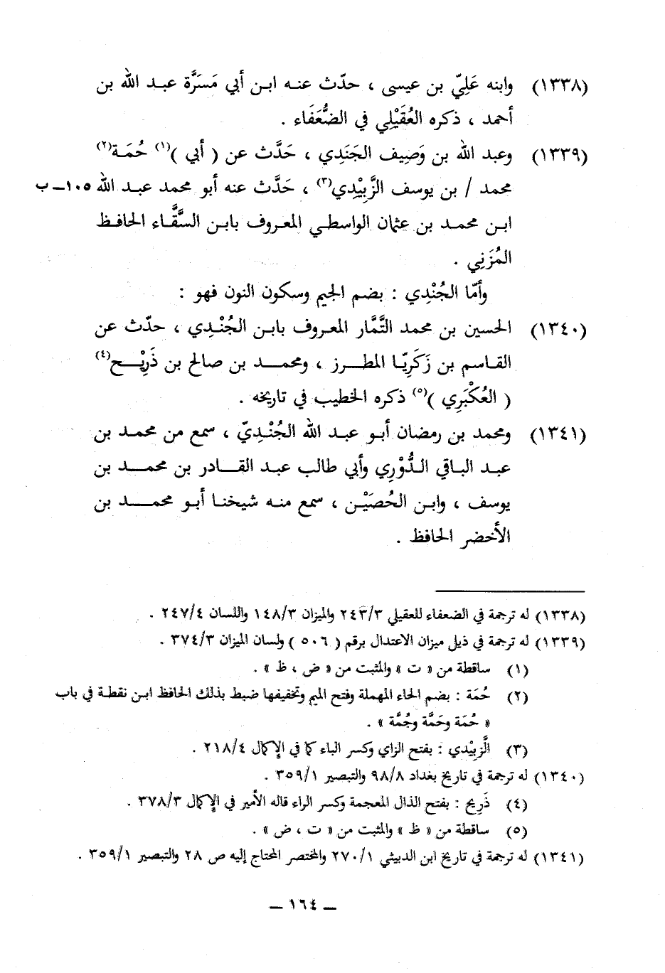 1340 - الْحُسَيْن بن مُحَمَّد التمار الْمَعْرُوف بِابْن الجندي حدث عَن الْقَاسِم بن زَكَرِيَّا الْمُطَرز وَمُحَمّد بن صَالح بن ذريح العكبري ذكره الْخَطِيب فِي تَارِيخه