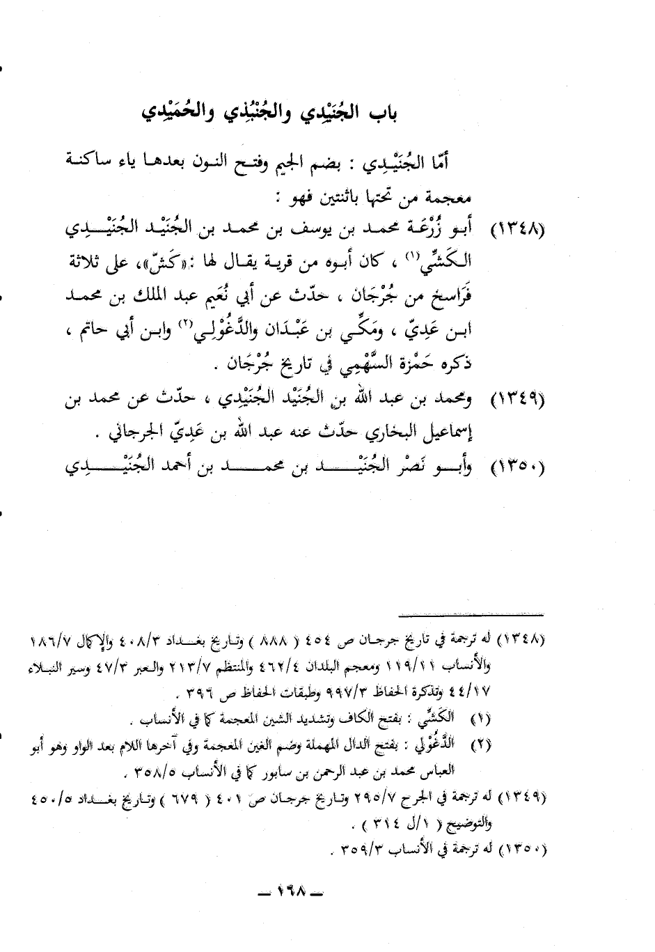 1349 - وَمُحَمّد بن عبد الله بن الْجُنَيْد الجنيدي حدث عَن مُحَمَّد بن إِسْمَاعِيل البُخَارِيّ حدث عَنهُ عبد الله بن عدي الْجِرْجَانِيّ