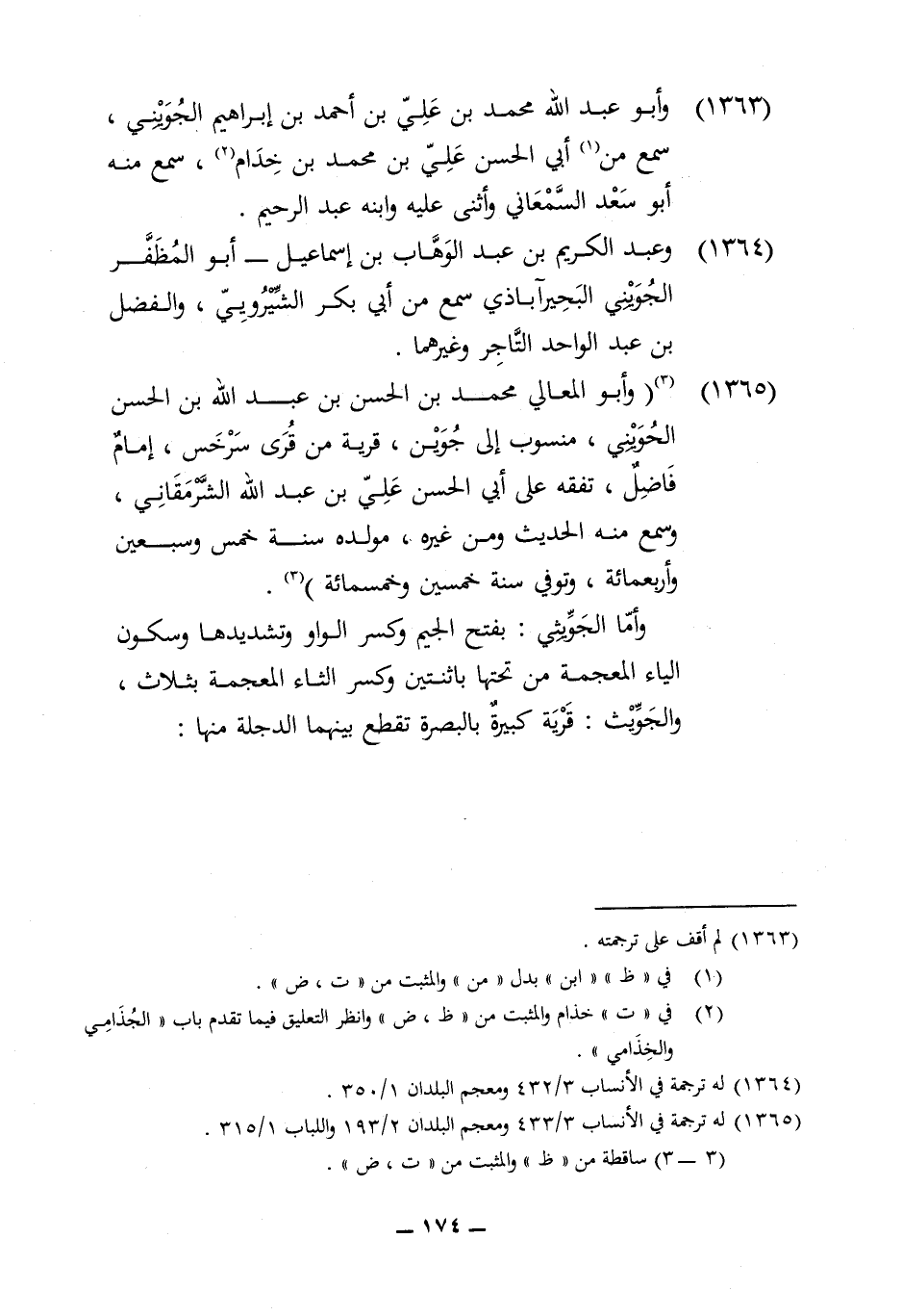 1364 - وَعبد الْكَرِيم بن عبد الْوَهَّاب بن إِسْمَاعِيل أَبُو المظفر الْجُوَيْنِيّ البحيرآباذي سمع من أبي بكر الشيرويي وَالْفضل بن عبد الْوَاحِد التَّاجِر وَغَيرهمَا