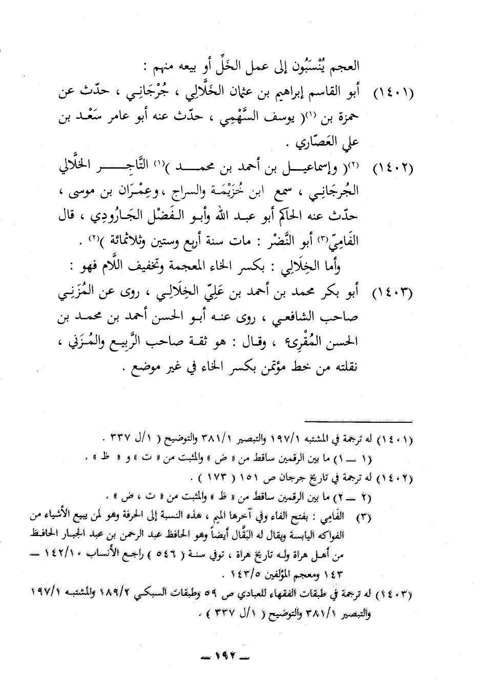 1401 - أَبُو الْقَاسِم إِبْرَاهِيم بن عُثْمَان الخلالي جرجاني حدث عَن حَمْزَة بن يُوسُف السَّهْمِي حدث عَنهُ أَبُو عَامر سعد بن عَليّ العصاري