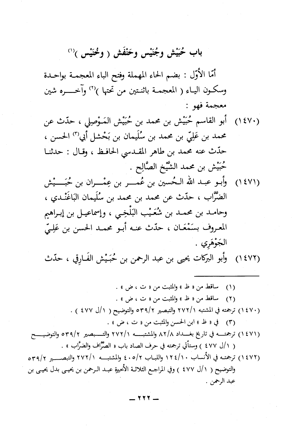 1470 - أَبُو الْقَاسِم حُبَيْش بن مُحَمَّد بن حُبَيْش الْموصِلِي حدث عَن مُحَمَّد بن عَليّ بن مُحَمَّد بن سُلَيْمَان بن بحشل أبي الْحسن حدث عَنهُ مُحَمَّد بن طَاهِر الْمَقْدِسِي الْحَافِظ وَقَالَ حَدثنَا حُبَيْش بن مُحَمَّد الشَّيْخ صَالح