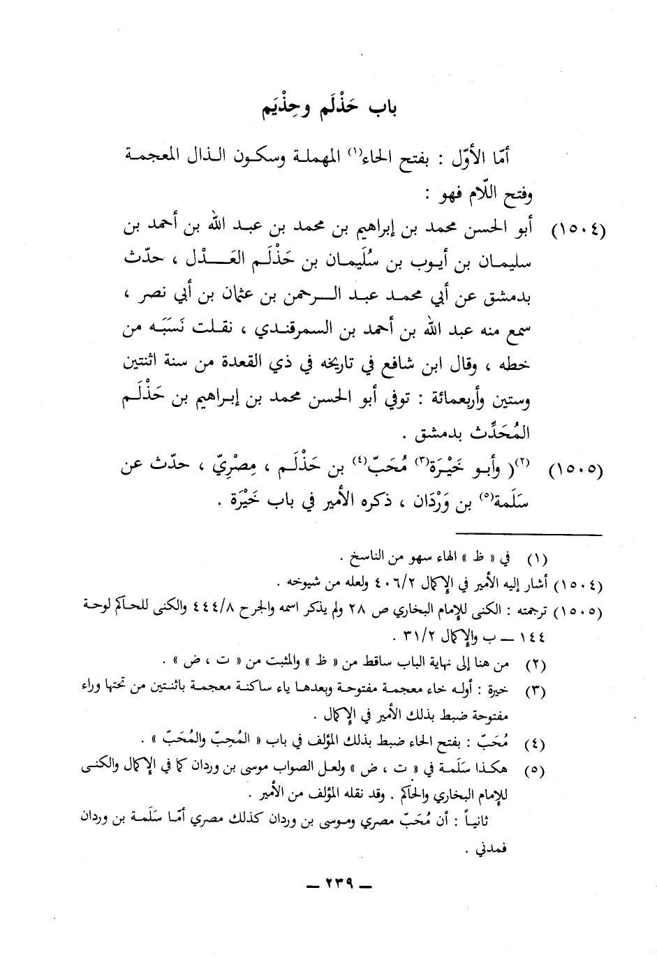 1504 - أَبُو الْحسن مُحَمَّد بن إِبْرَاهِيم بن مُحَمَّد بن عبد الله بن أَحْمد بن سُلَيْمَان بن ايوب بن سُلَيْمَان بن حذلم الْعدْل حدث بِدِمَشْق عَن أبي مُحَمَّد عبد الرَّحْمَن بن عُثْمَان بن أبي نصر سمع مِنْهُ عبد الله بن أَحْمد السَّمرقَنْدِي نقلت نسبه من خطه وَقَالَ ابْن شَافِع فِي تَارِيخه فِي ذِي الْقعدَة من سنة اثْنَتَيْنِ وَسِتِّينَ وَأَرْبَعمِائَة توفّي أَبُو الْحسن مُحَمَّد بن إِبْرَاهِيم بن حذلم الْمُحدث بِدِمَشْق