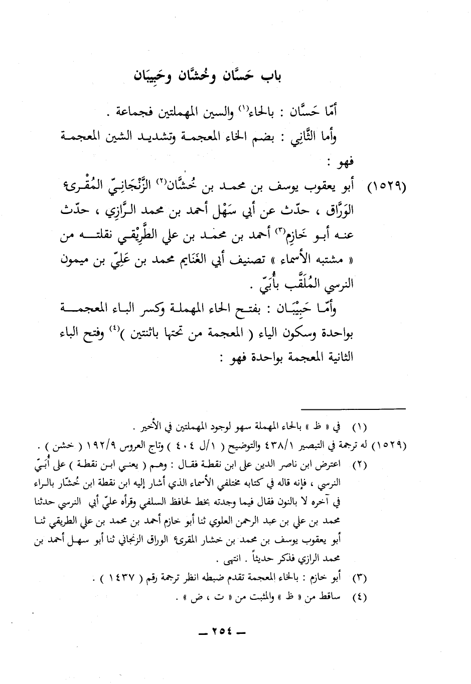 1529 - أَبُو يَعْقُوب يُوسُف بن مُحَمَّد بن خشان الزنجاني المقرىء الْوراق حدث عَن أبي سهل أَحْمد بن مُحَمَّد الرَّازِيّ حدث عَنهُ ابو خازم احْمَد بن مُحَمَّد بن عَليّ الطريقي نقلته من مشتبه الْأَسْمَاء تصنيف ابي الغنايم مُحَمَّد بن عَليّ بن مَيْمُون النَّرْسِي الملقب بِأبي
